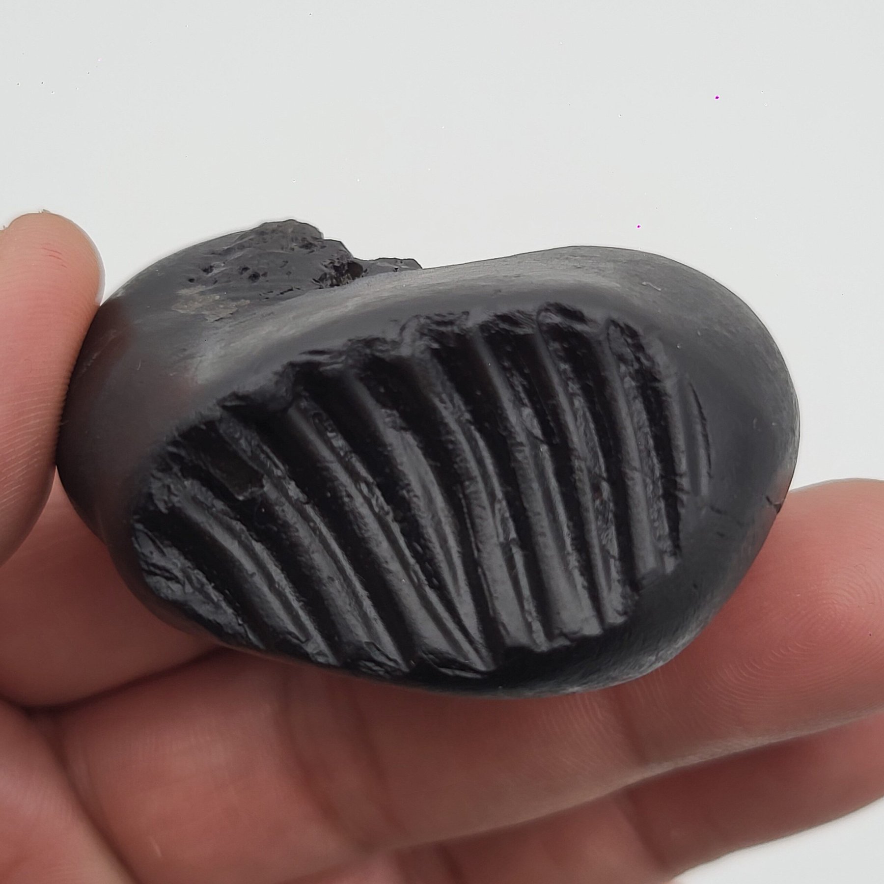 It is 100% natural, not carved or altered. All coils, layers, and impressions are naturally formed over time.