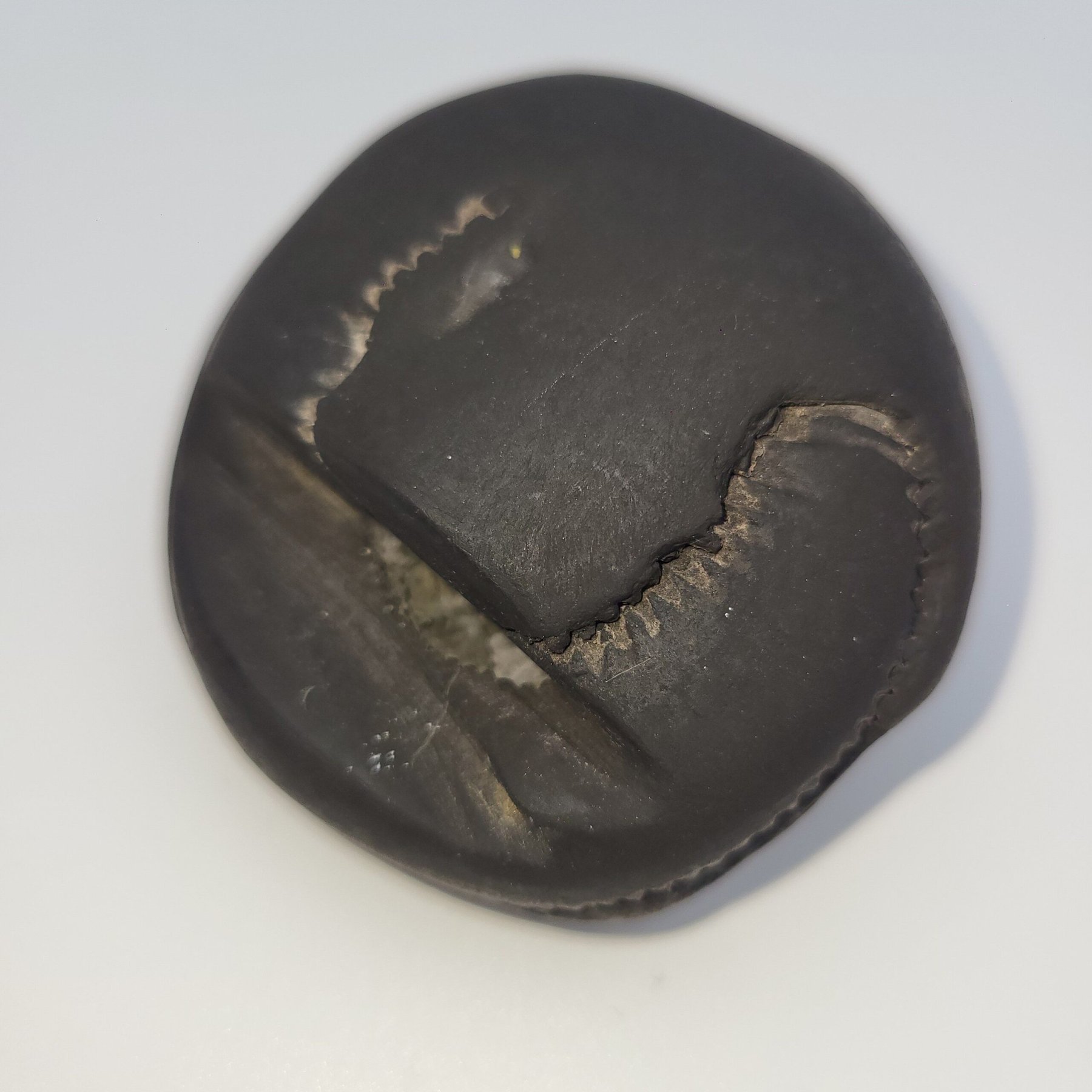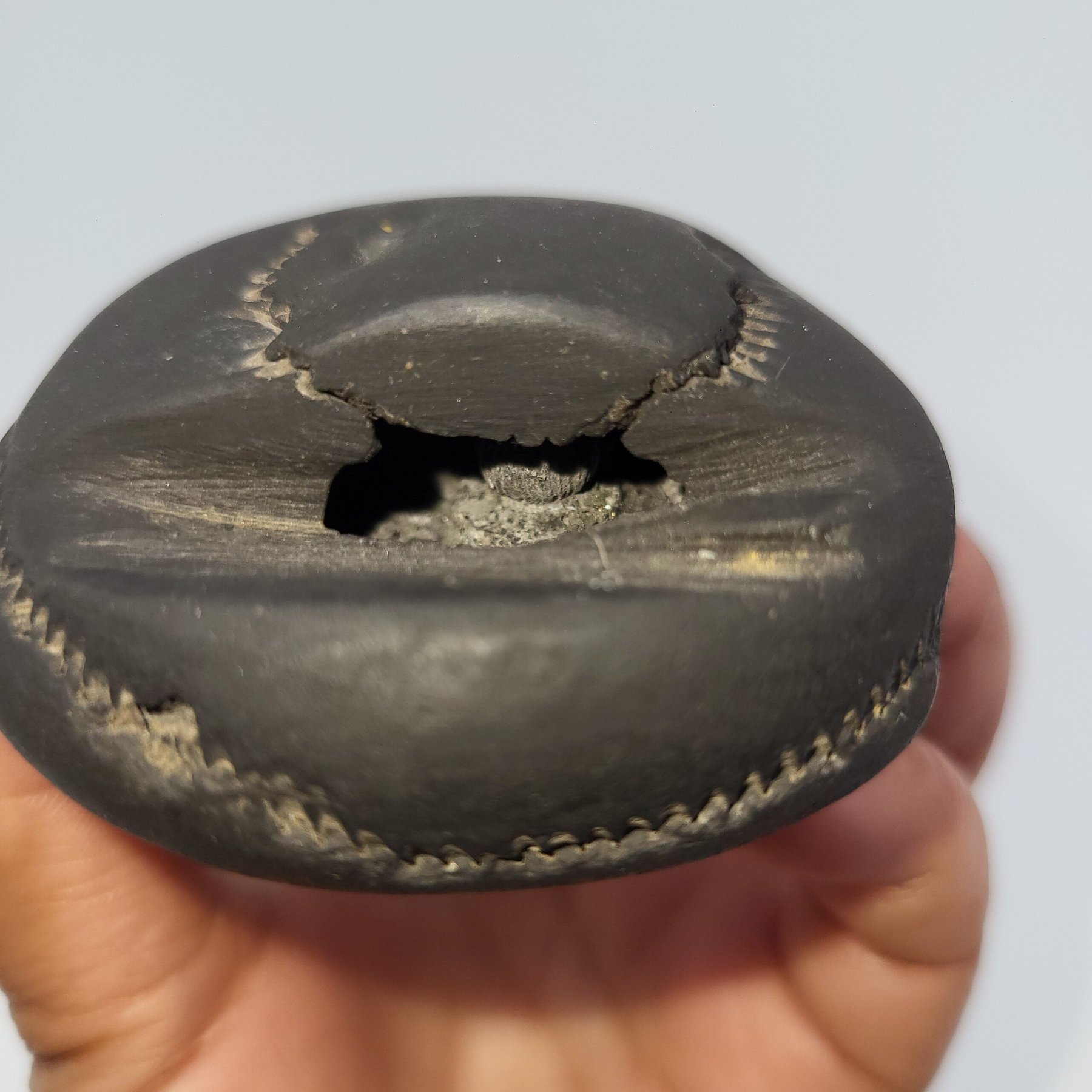 This Shaligram is 100% natural, not carved or man-made. All lines, impressions, and formations are naturally created over time.