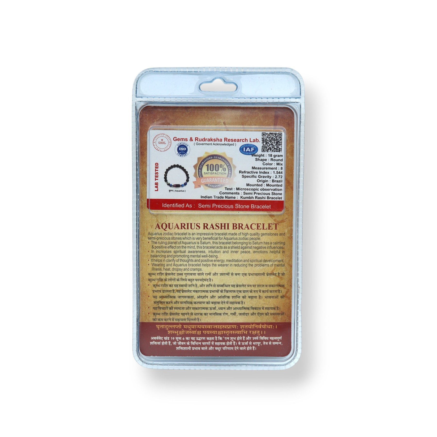 - Aquarius Rashi Bracelet is an impressive bracelet made from high-quality gemstones and semi-precious stones, specially beneficial for those born under the Kumbh Rashi (Aquarius).