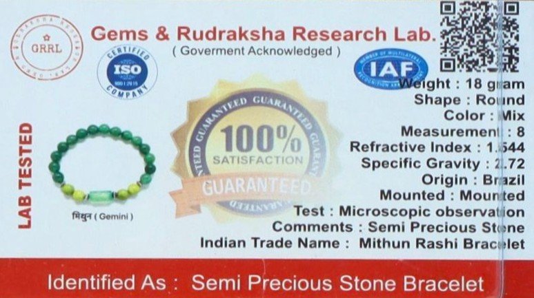 - मिथुन राशि का स्वामी ग्रह बुध होता है, और यह ब्रेसलेट बुध से संबंधित ऊर्जा को संतुलित कर निर्णय क्षमता, रचनात्मकता और संवाद कौशल को निखारता है।