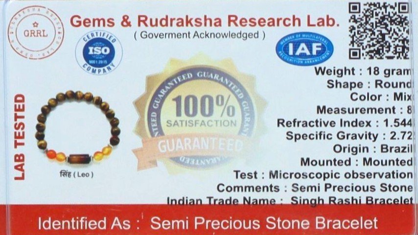 - सिंह राशि का स्वामी ग्रह सूर्य होता है, और यह ब्रेसलेट सूर्य से संबंधित ऊर्जा को संतुलित करके नेतृत्व क्षमता, आत्मबल और रचनात्मकता को बढ़ावा देता है।